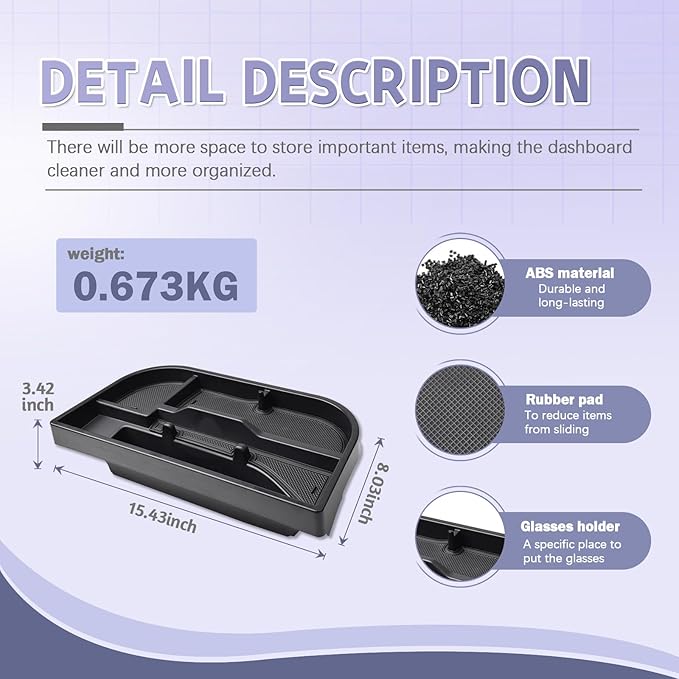 - [ Meticulously Crafted ] : Featuring soft liners and crafted from ABS materials, this Dashboard organizer reduces items from sliding or rolling during sharp turns or sudden stops. Enjoy clutter-free storage that stays firmly in place, even on bumpy roads.