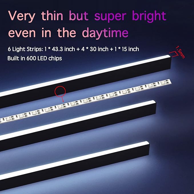 - High Bright and Uniform: Our acrylic light strip is equipped with 600+LED chips, and the dense and bright LED scatter light through the acrylic, making our light bright, soft, and vivid. Higher uniformity than traditional fiber optic lights and most indoor light strips in rooms. Bright, soft, and highly uniform lighting adds a comfortable atmosphere and tidy to your car.