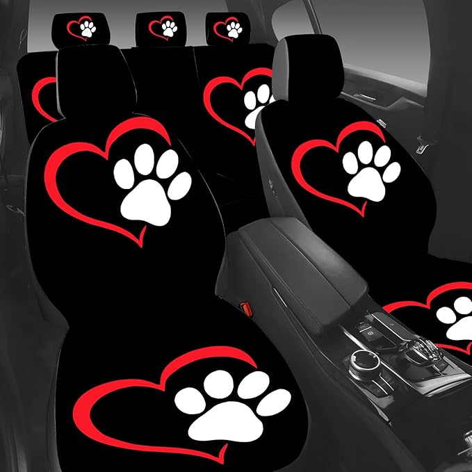 5 Pcs Premium Heart-Shaped Paw Print Car Seat Cover, Breathable & Washable Car Seat Covers Full Sets, Fashionable Printed Seat Covers for Cars Interior, Universal Fit for Most Cars