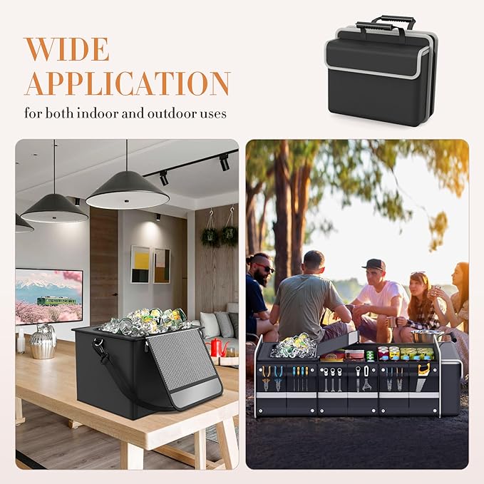 - Trunk organizer with cooler: The TITIYIOF Car Trunk Organizer keeps your vehicle neat and clutter-free with ease. · Removable Cooler Bag,Truck bed organizer: This trunk organizer features a removable cooler bag that can be conveniently carried on your shoulder or back. Designed with premium insulation, it keeps food hot or cold for 8 to 12 hours. Perfect for outdoor adventures like kayaking, beach outings, camping, hiking, fishing, or tailgating, it ensures your drinks stay chilled and your trip stays refreshing.