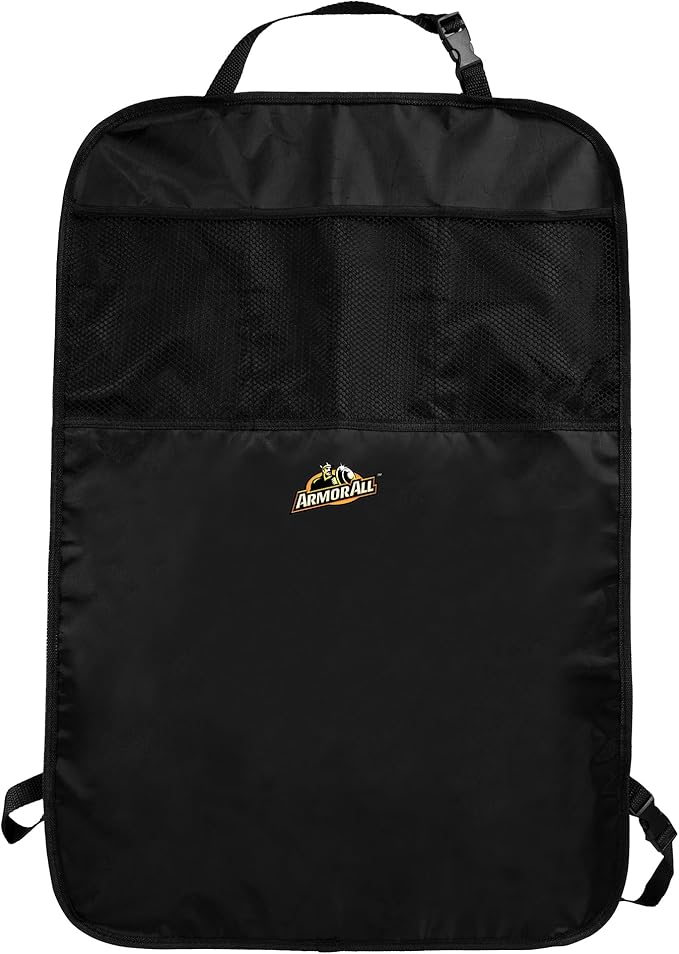 Armor All Car Backseat Kick Mat with Storage, Backseat Kick Protector for Kids with 3 Mesh Pockets, Protects from Kicks, Scratches, Scuffs, Spills, Stains, 3 Adjustable Straps for Easy Installation