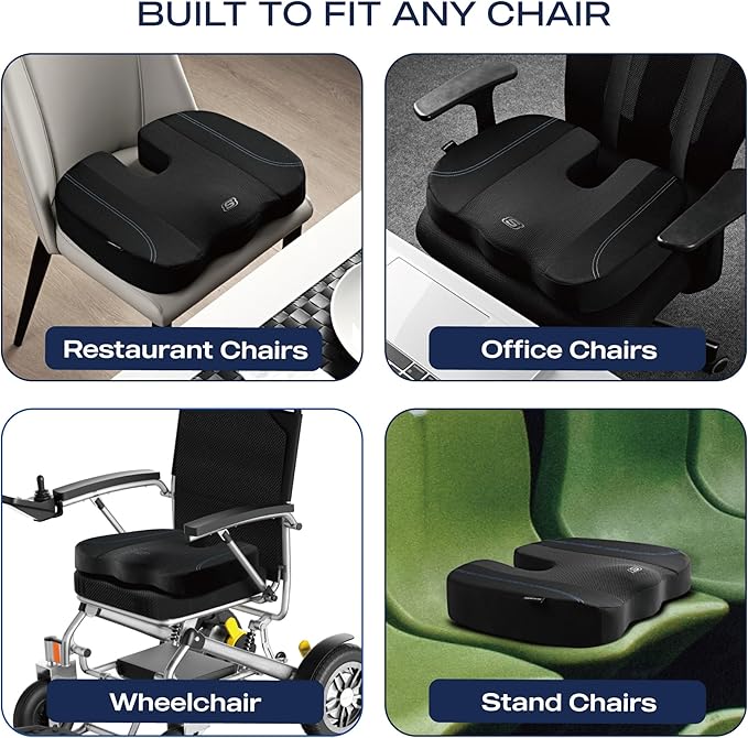 Skechers Seat Cushion, Air Cooled Memory Foam Cushion for Office Chair,Ergonomic Office Desk Accessories for Tailbone Pain Relief,Chair Cushions for Long Sitting Office Workers,Car Drivers,Black