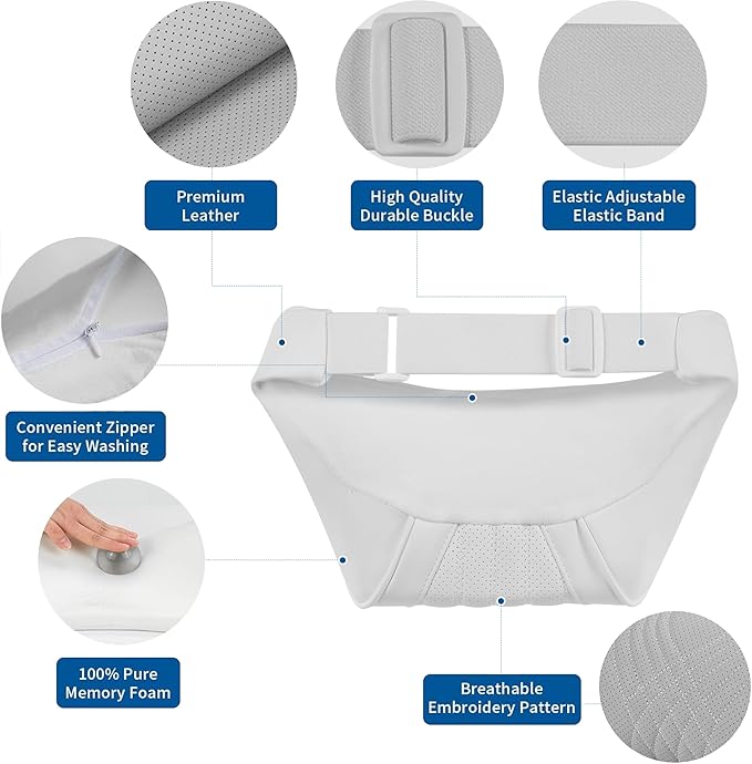 Car Headrest Memory Foam Neck Pillow for Driving with Leather Cover Soft Comfortable Seat Head Pillow Cushion for Most Cars SUV Sedan Home Office, White, 1PC