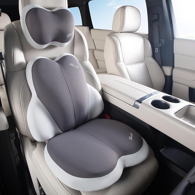 - Pain Pressure Relief, Enhanced Comfort: Enjoy all-day comfort with our office chair lumbar support seat cushion and headrest neck pillow kit. FLORICH neck and lumbar support pillow seat cushion is ergonomically designed to reduce discomfort in the lower back, tailbone, sciatic nerve, and stiff neck. It makes you feel comfortable in long distance driving or long sitting.