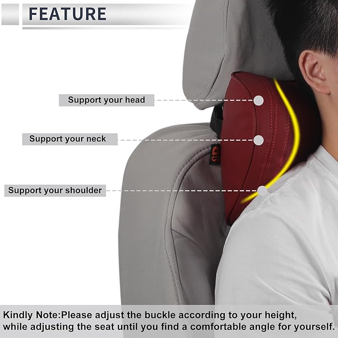 - GOOD MATERIAL: Car headrest pillow are made of Nappa Leather,Memory Foam, moderate thickness and slow rebound. Car seat neck pillow offers good support for your neck and head, help you maintain a correct driving posture, make your driving safer, reduce neck pain and comfort your neck.