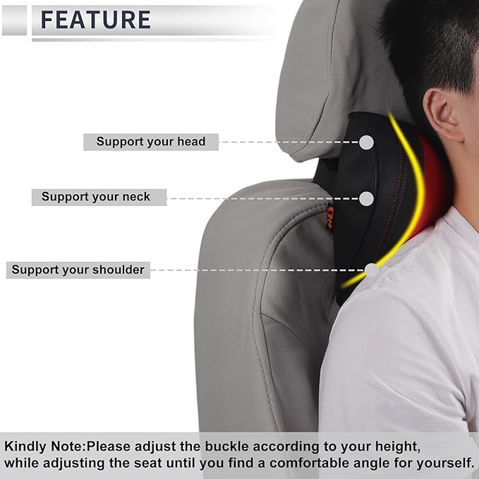 - ERGONOMIC DESIGN: Car neck pillow with ergonomic design that comfortably protects your neck and shoulders during long drives. Memory foam car headrest pillow provides comfort for your neck and head.It greatly reduces your neck pain or numbness during long drives or while sleeping. Bring a good comfort experience to drivers and passengers.
