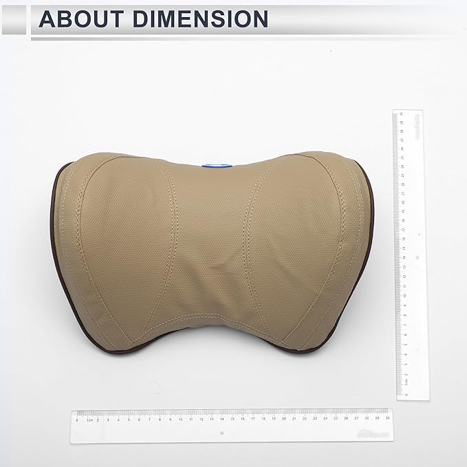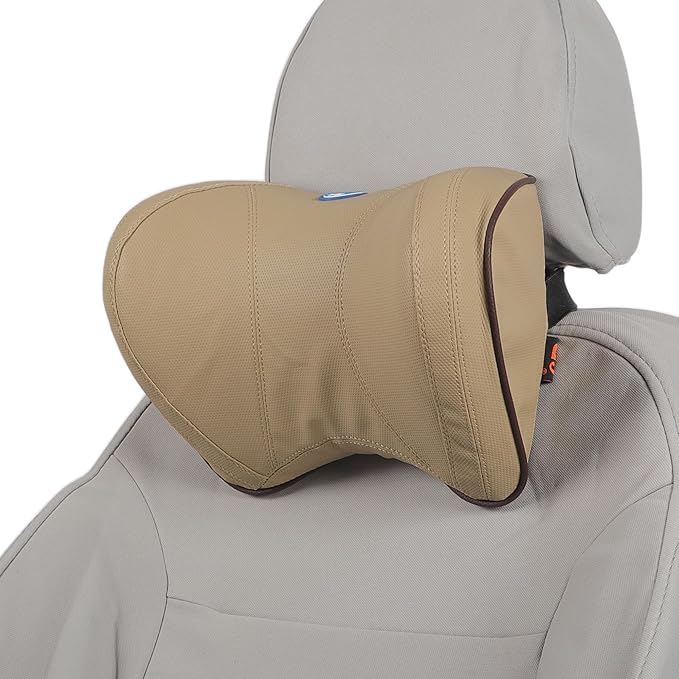 Car Headrest Pillow Ergonomic Comfortable Neck Support Pillow Nappa Leather and Memory Foam Adjustable Width Beige 1 Pc for Driving Travel