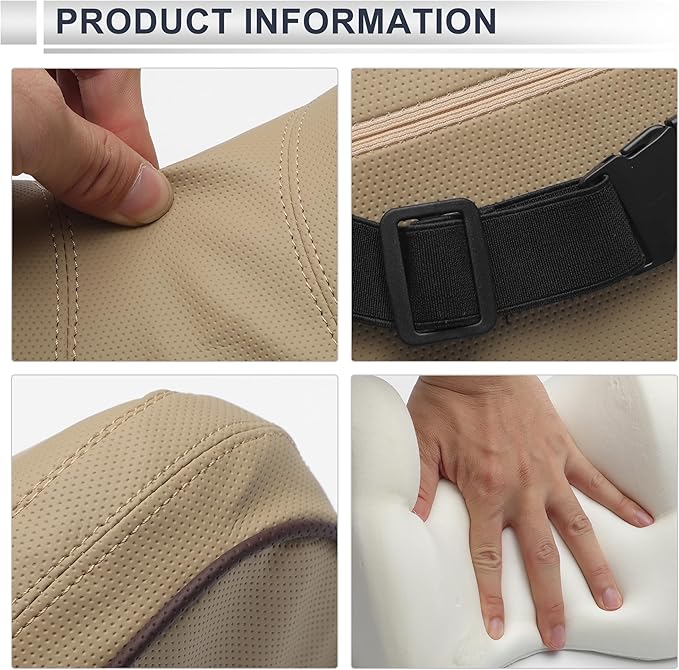 - GOOD MATERIAL: Car headrest pillow are made of Nappa Leather,Memory Foam, moderate thickness and slow rebound. Car seat neck pillow offers good support for your neck and head, help you maintain a correct driving posture, make your driving safer, reduce neck pain and comfort your neck.