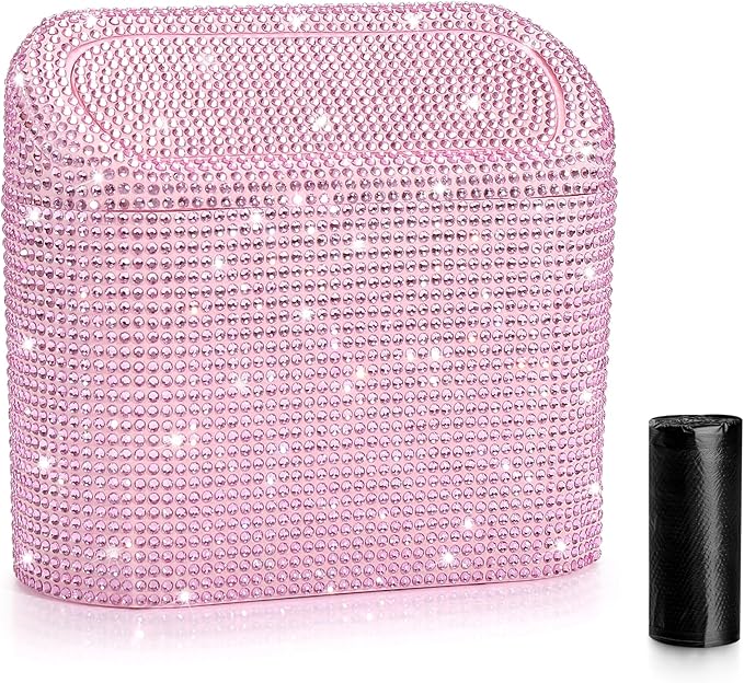 - Suit for Any Vehicle: This bling rhinestone covered trash can with perfect size fit for most type of vehicle, such as cars, trucks, minivans, SUVs, RVs, boats, cabs and more