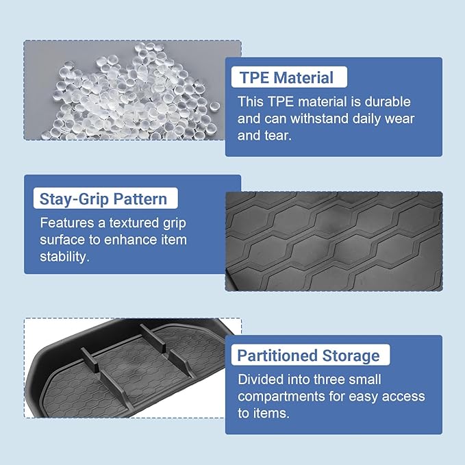 - Durable and Long-Lasting: Crafted from high-quality TPE, this dashboard compartment cover is built to last. It’s wear-resistant, easy to clean, and provides durability that ensures your storage solution stands up to everyday use. Say goodbye to flimsy, low-quality organizers.