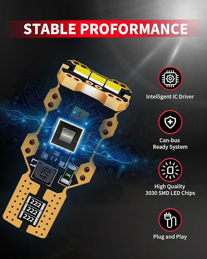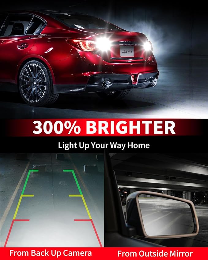 - 【300% Brighter】LASFIT 921 led bulb has 3030 SMD LED chips, with high illumination and perfect beam pattern, supporting 1400 lumens brightness with 6000K white light output. You can see farther and clearer when reversing at night. Working Power: 5W; Working Volts: 12V-24V.