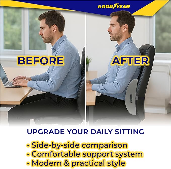 - BOOST YOUR POSTURE: If you spend long hours sitting at a desk or driving, our lumbar support pillow can help you achieve a more comfortable seating position. Designed to support your lower back, the integrated memory foam back support provides cushioning that adapts to your body as you sit, promoting better posture throughout the day. This lumbar back support cushion pillow is perfect for enhancing your posture and reducing strain.