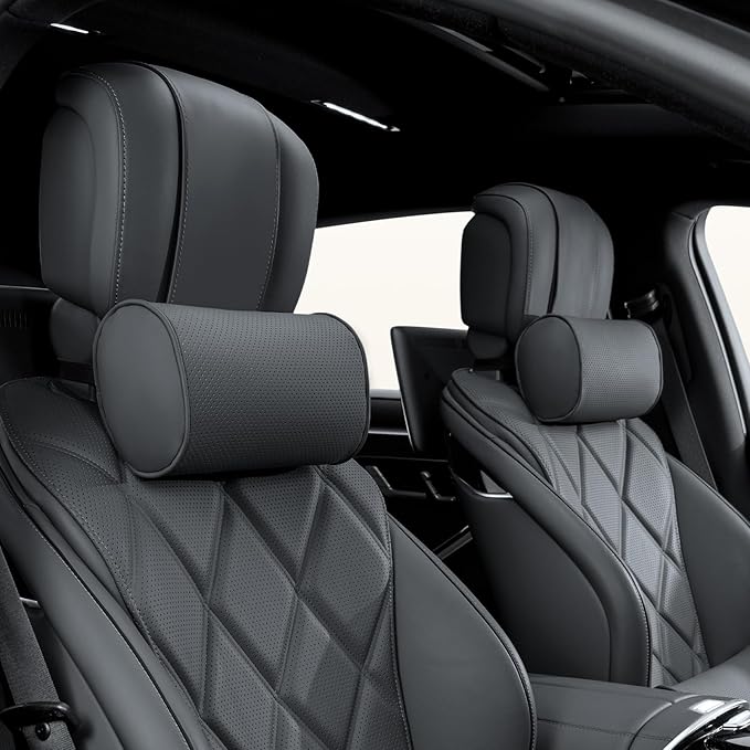 - Dapucarin Car Headrest Pillow features a luxury leather surface, soft to the touch, scratch-resistant and easy to clean, breathable perforations prevent overheating, ensuring comfort in all seasons