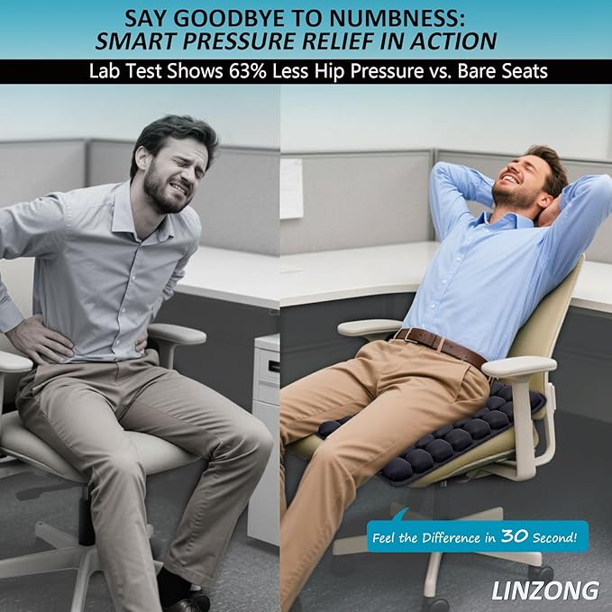 - Ergonomically Designed Air Cell: Inflatable seat cusahion with 56 ergonomic airbags dynamically distributes pressure across hips, waist, tailbone and thighs. Effectively reduces sitting fatigue during prolonged use while delivering full-body orthopedic support