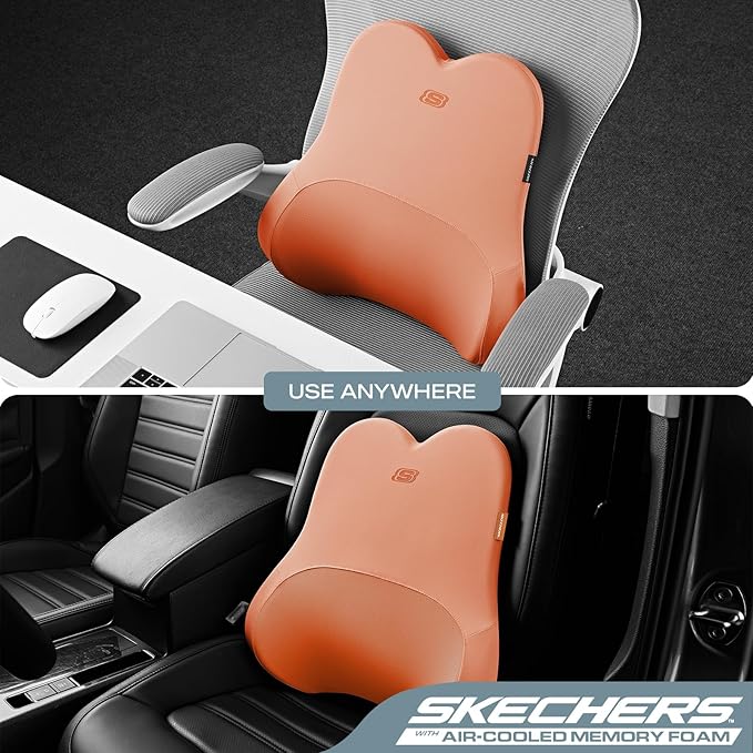- Skechers Air-Cooled & Memory Foam Lumbar Pillow,Lumbar Support Pillow For Office,Chair Lower Back Pain Relief Lumbar Pillow,Ergonomic Design Back Support Pillow For Office Chair,Car,Home, Travel,Orange