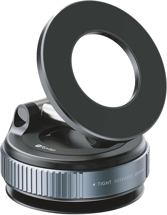 Ryvlan Carmount Vacuum Magnetic Phone Mount for Car– Magsafe Suction iPhone Stand, Content Creator Phone Holder & Car Mount, iPhone Holder for Dashboard & Windshield, Suction Cup Samsung Stand