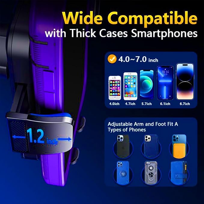 - Convenient One-Hand Operation: Features an intuitive quick-release button and self-adjusting clamp arms, allowing effortless phone attachment and removal while keeping your focus on the road.
