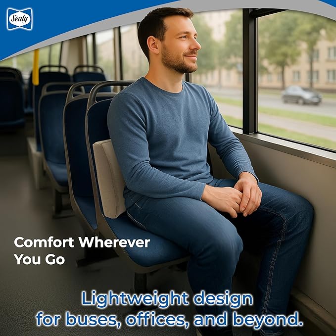 Sealy Memory Foam Lumbar Support Pillow – Ergonomic Back Cushion for Office Chairs and Car Seats, Premium Lower Back Pain Relief and Multi-Purpose Comfort (Brown)