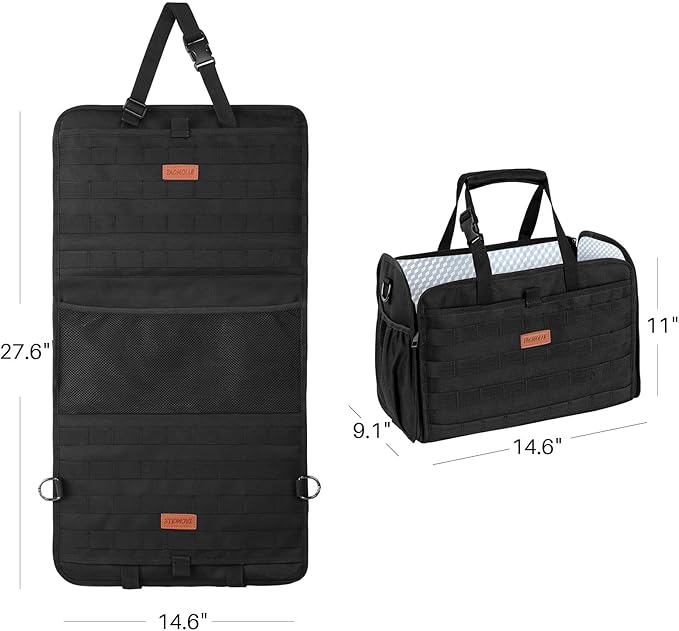 - Keep Your Car Organized: BIZOCO car back seat organizer, measuring 27.6" x 14.6", is designed with a standard MOLLE webbing; providing extra storage space and convenient attachment for various tactical pouches and personal items; smart layout for tidy and quick access