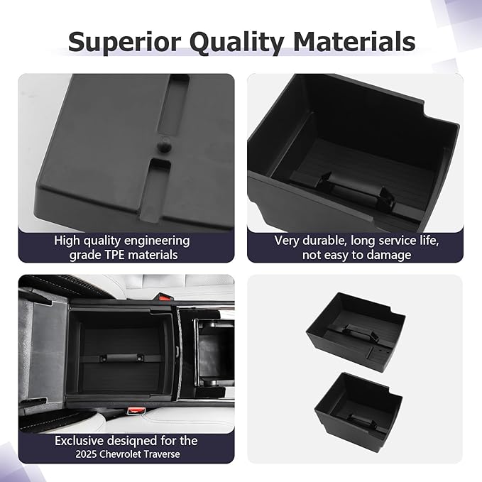 - High-quality Material — This 2025 2026 Traverse accessories,Traverse accessories 2025,2025 2026 Traverse armrest storage box is made of ABS plastic. Traverse center console organizer is very strong and can be a good independent armrest box while you are driving. Traverse accessories 2026 is also moisture-proof and resistant. Corrosion and durability