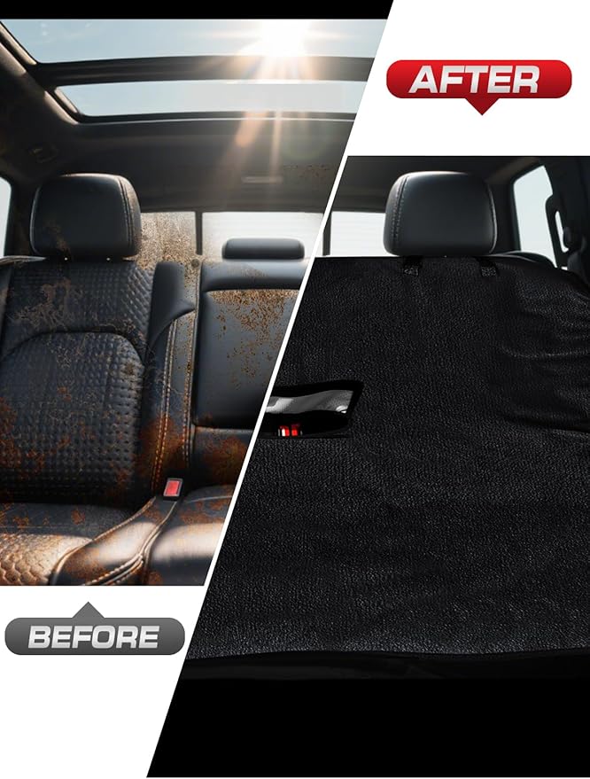 - Complete Seat Protection: Effectively guards your back seats from daily wear and tear, including sweat, pet footprints, scuff marks, and spills. Our water-resistant design not only protects but also adds a touch of elegance to your car’s interior.