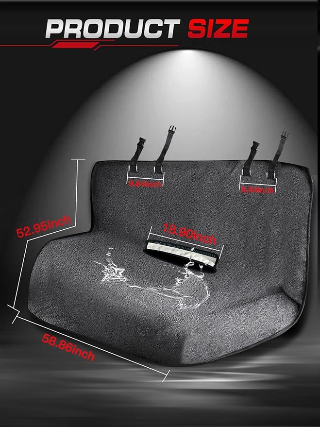 - Perfect Fit for Most Vehicles: Measuring 149.5cm/58.9in wide x 134.5cm/52.9in high, this large, full-coverage seat protector fits most vehicle seats snugly, providing comprehensive protection for your back seat. A perfect match for a wide range of vehicles.