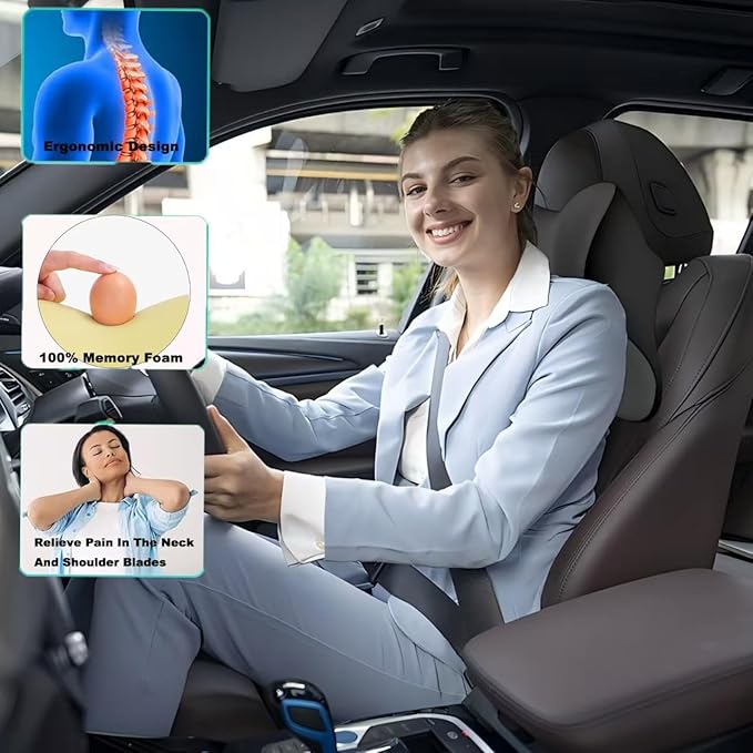 - 【Premium Comfort】Experience cloud-like support with our memory foam car neck pillow that molds to your neck's natural curve, eliminating stiffness during 8+ hour road trips or daily Uber driving shifts.
