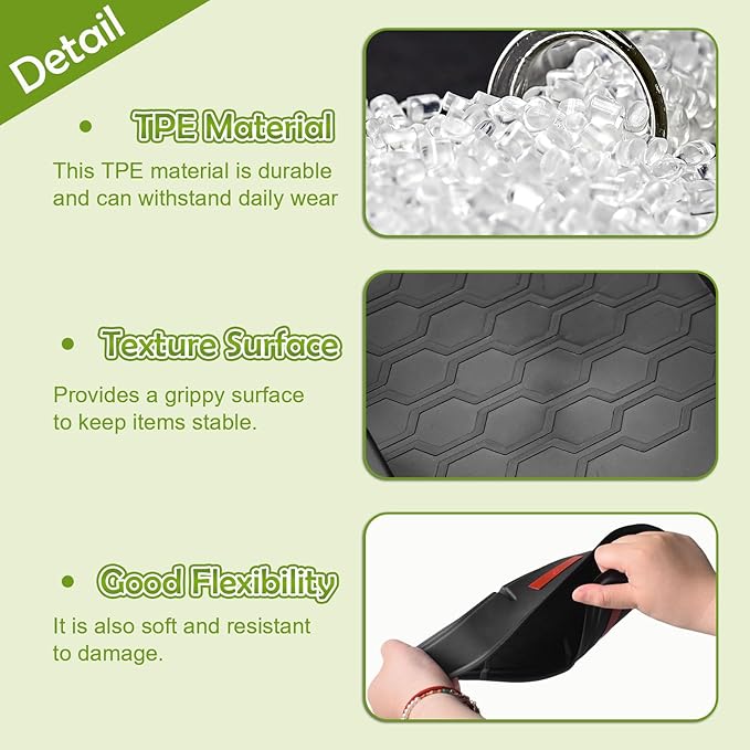 - Non-slip TPE Material: Made from non-slip TPE material with textured surface to keep items stable and quiet while driving—even on rough roads.