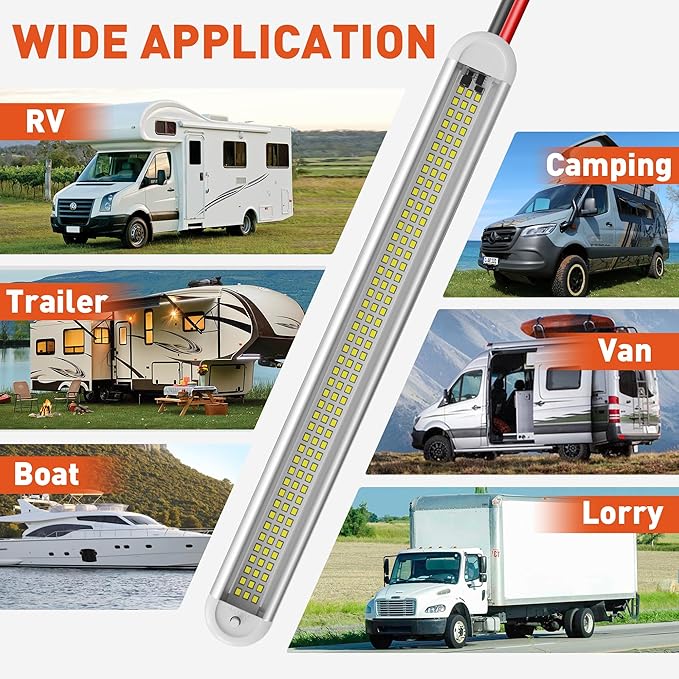 - 【Convenient Control】This led light bar features an easy-access ON/OFF switch at the end, letting you control lighting instantly for any scenario. Ideal as led trailer lights and enclosed trailer lights, this light bar simplifies operation—no extra tools or complex setup required. Whether adjusting brightness for cargo checks, night driving or camping, the intuitive switch makes it effortless to tailor illumination to your needs, perfect for all vehicle interior lighting demands.