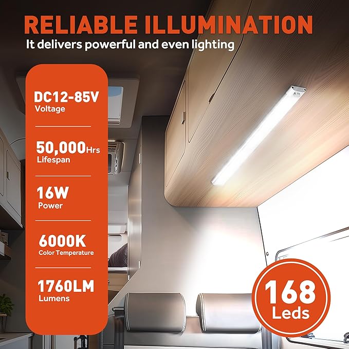 - 【Wide Application】This 12 v led light (168 high-brightness LEDs, 12V/16W) features a flexible design and 12V-85V wide voltage range, perfectly fitting cars, pickup trucks, SUVs, RVs and other common vehicles. As practical interior car lights and essential rv accessories for inside, it delivers ample illumination for camping trips, nighttime maintenance, on-road reading, emergencies and daily use—your reliable on-the-go lighting companion.