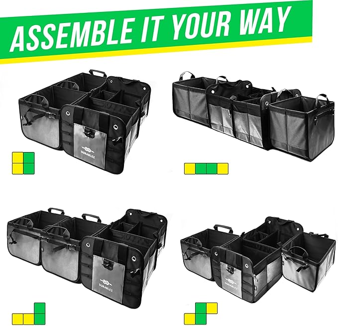 - Premium 5-module trunk organizer designed for drivers who need maximum car storage. Works as a full cargo system or separates for seat use, road trips, groceries, tools, sports gear and daily organization needs