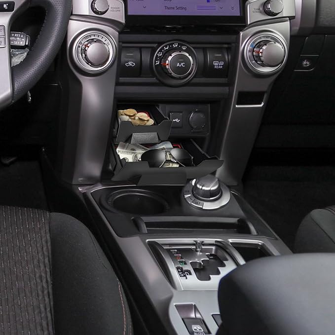 - The luster of the drawer surface perfectly matches the interior of the 4runner and looks like an original car accessory. Moreover, the mold opening is precise and will not affect the use of the original vehicle button functions,this innovative accessory transforms those small, empty, and practically useless cubbies into functional storage spaces.