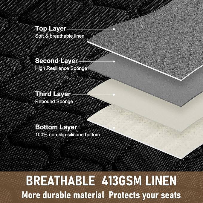 - 【Premium Linen Material】: Our linen car seat covers are made of 413GSM linen fabric, which is wear-resistant, not easily deformed, and more durable than other products. The linen bottom seat covers are breathable for long drives.