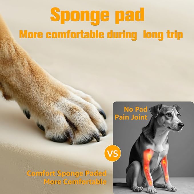- 【 Strong Support 】 The PETICON back seat extender for dogs made of 8 sturdy hard bottom splice plates and 8 thick sponges, more durable and comfortable than other wood-based boards and without any odor. The backseat cover extends 40% space and it can hold up to 400 pounds. The built-in hard bottom plate and sponges can be removed for easy disassembly and cleaning of the car dog seat cover. The thick sponge allows dog to play or rest more comfortably during long car trips.