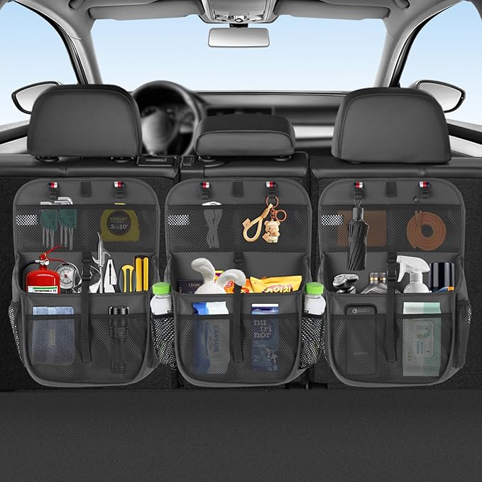 - VERSATILE STORAGE: Premium Viaviat car organizer with multiple compartments and mesh pockets,perfect for storing car essentials, toys, snacks, tools and travel supplies in trunk or behind seats.
