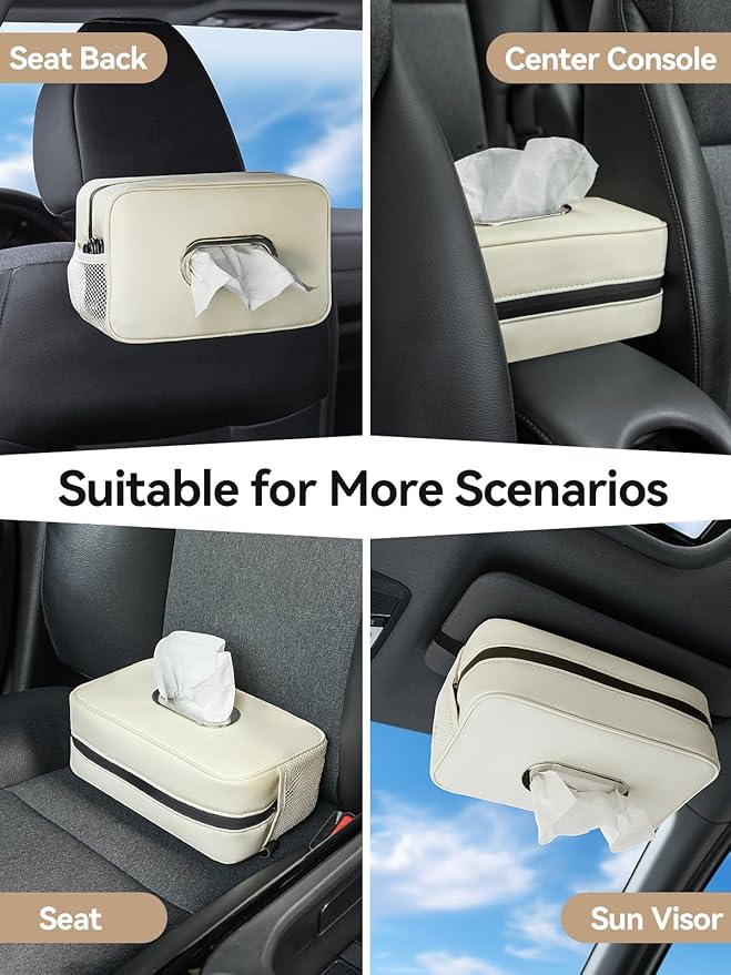 - 【Easy Installation & Multi Scenario Use】The buckle design allows for quick installation and removal. Adjustable shoulder straps make it compatible with various vehicle models.Black tissue box cover can be easily installed on car center controls, car sun visor, back / front of car headrests, Place on the seat etc. Which is the perfect accessory for cars, trucks, SUVs, vans, RVs, campers, and boats. It's also great for outdoor travel and camping