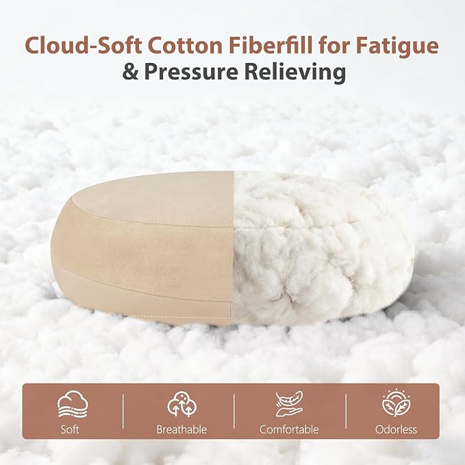- 【Premium Material】Featuring breathable suede for cloud-soft smoothness, paired with fresh, odor-free and easy cleaning leather that prevents sticky sweat buildup—keeping your neck cool and dry in summer. The supportive cotton filling delivers plush-yet-firm support to cradle your head, neck, and lower back, reducing pressure points for fatigue-free long drives.