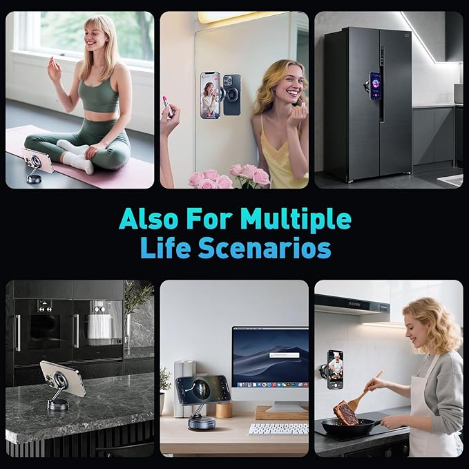 - 【Strong Suction & Stable Hold】TUTGLOBAL upgraded nano gel vacuum magnetic car phone holder uses advanced nano gel+rotating-lock suction, boosting suction by 60% compared to traditional press-on mounts and normal vacuum suction mounts. It stays stable on bumpy roads or during sudden stops. The 4-layer high-strength nano gel suction cup supports up to 108lbs and holds firmly in extreme temperatures (-40°F to 300°F). After 9999+ durability tests and 200+ reattachments, it can be cleaned and regain 99% of its suction power for lasting stability.