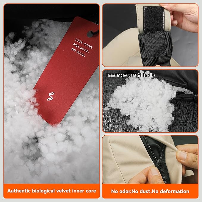 - 2pcs car neck pillows made with microfiber velvet fabric and Plant-based polyester,odorless, dust-free, and resilient.11.8x7.5inch