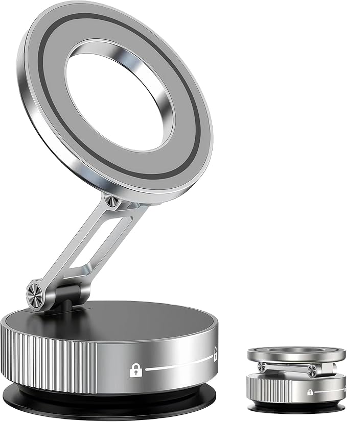 - [Cordless Vacuum Suction for Hassle-Free Use] Unlike other vacuum phone mounts that require charging or batteries, This magnetic suction phone mount ensures a secure hold without any power source, making it easy to use anytime, anywhere.