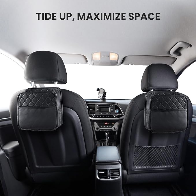 - Versatile Usage: More than just a seat organizer, it also functions as a dedicated trash bin to maintain a tidy interior, making it perfect for family road trips. Dual-sided mesh pockets conveniently hold water bottles, while the front pocket stores flat items like wallets and wet wipes.