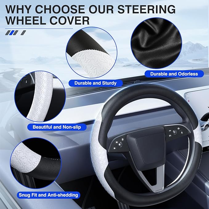 - 【Perfect Fit】Our steering wheel covers are compatible with all Tesla Model 3 and Model Y steering wheels, perfectly customized!