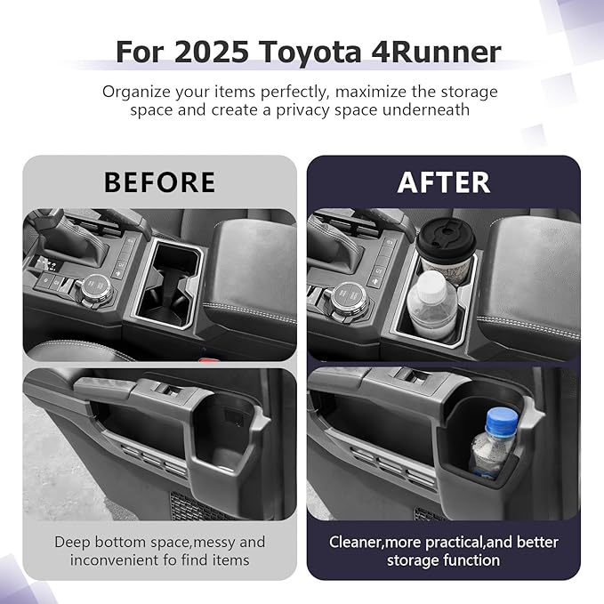 - Perfect fit—Compatible with 2025 Toyota 4Runner trims. Installation position: Center Console Cup Holder