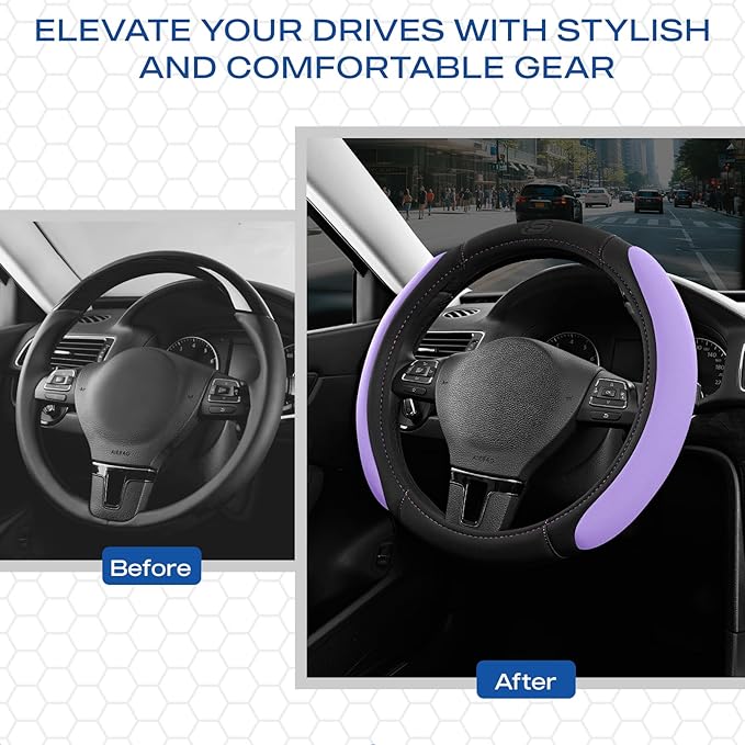 - ANTI SLIP DESIGN - The rubber inner ring adds a non-slip line, make sure the steering protector won't move during driving. Keep your safety all the time, and you will be able to better control the steering wheel.