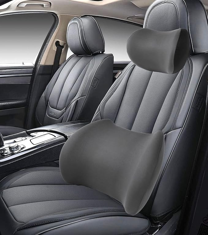 2025 New Car Headrest Pillow Set – The car Neck Pillow is as Soft as a Marshmallow, and The Lumbar Support Pillow for car can Soothe Lumbar Fatigue. Relieve Your Driving Tiredness. (Gray)