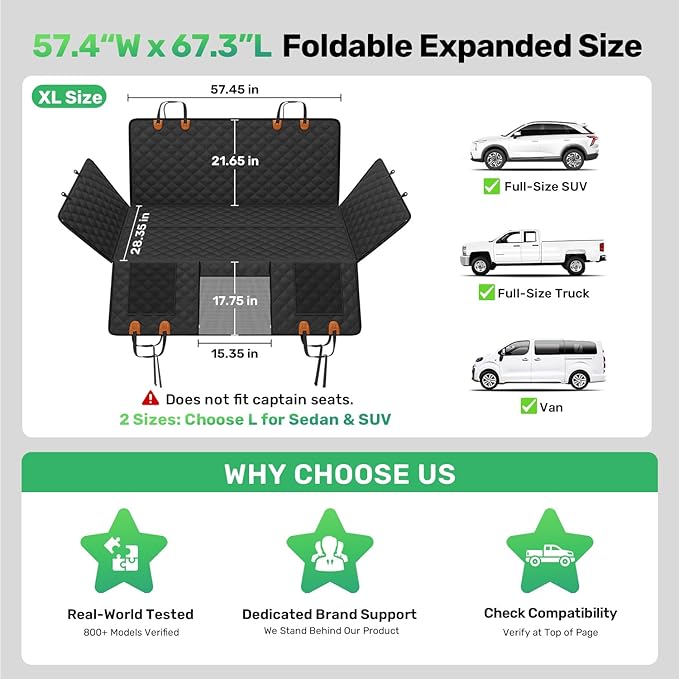 - [XL Custom Fit for F150, Silverado, Ram & Large SUVs] Finally, a backseat extender that actually fits your Crew Cab. Our extra-wide 28.5" design (vs 25" standard) maximizes space in full-size trucks and large SUVs, eliminating the "cramped cab" whine. It provides a massive, flat platform for your Golden Retrievers or German Shepherds to sprawl out comfortably, turning your back seat into a spacious mobile bed.