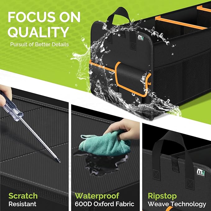 MIU COLOR Trunk Organizer for SUV, Collapsible Trunk Organizer for Car, Non-Slip Bottom, Storage Organizer for Sedans, Van, Jeep, Grocery, Large 4 Compartments, Black Mixed Orange 32"×13"×12"