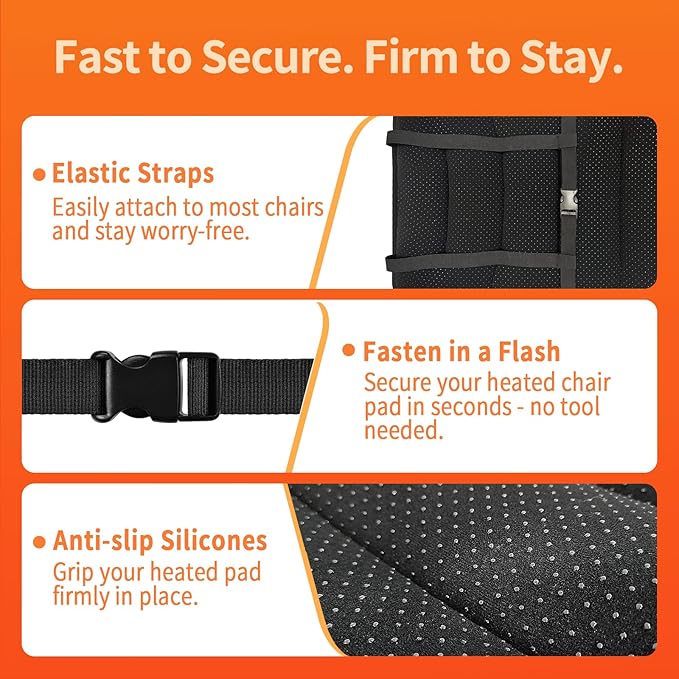 - Quick Heating - This office chair heating pad warms up in minutes, providing instant comfort and soothing warmth so you can stay cozy and focused without waiting.