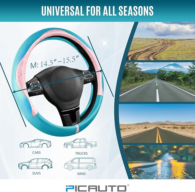 - UNIVERSAL SIZE - Perfect Fit for Most Steering Wheels: Engineered to fit standard steering wheels ranging from 14.5” to 15.5” in diameter, this universal-fit cover is ideal for most sedans, SUVs, trucks, and crossovers. It's a must-have upgrade for your steering wheel protection and style.