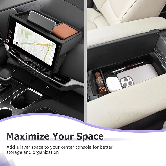 - Maximize Your Space — organizer for Sienna console,2025 Sienna accessories, Sienna glove box organizer increase the available space of the center console, you can easily store and access your items, such as pens, coins, keys, wallets, etc., and quickly access items without digging holes. Orderly storage helps your 2025 Sienna center console get rid of the messy storage environment